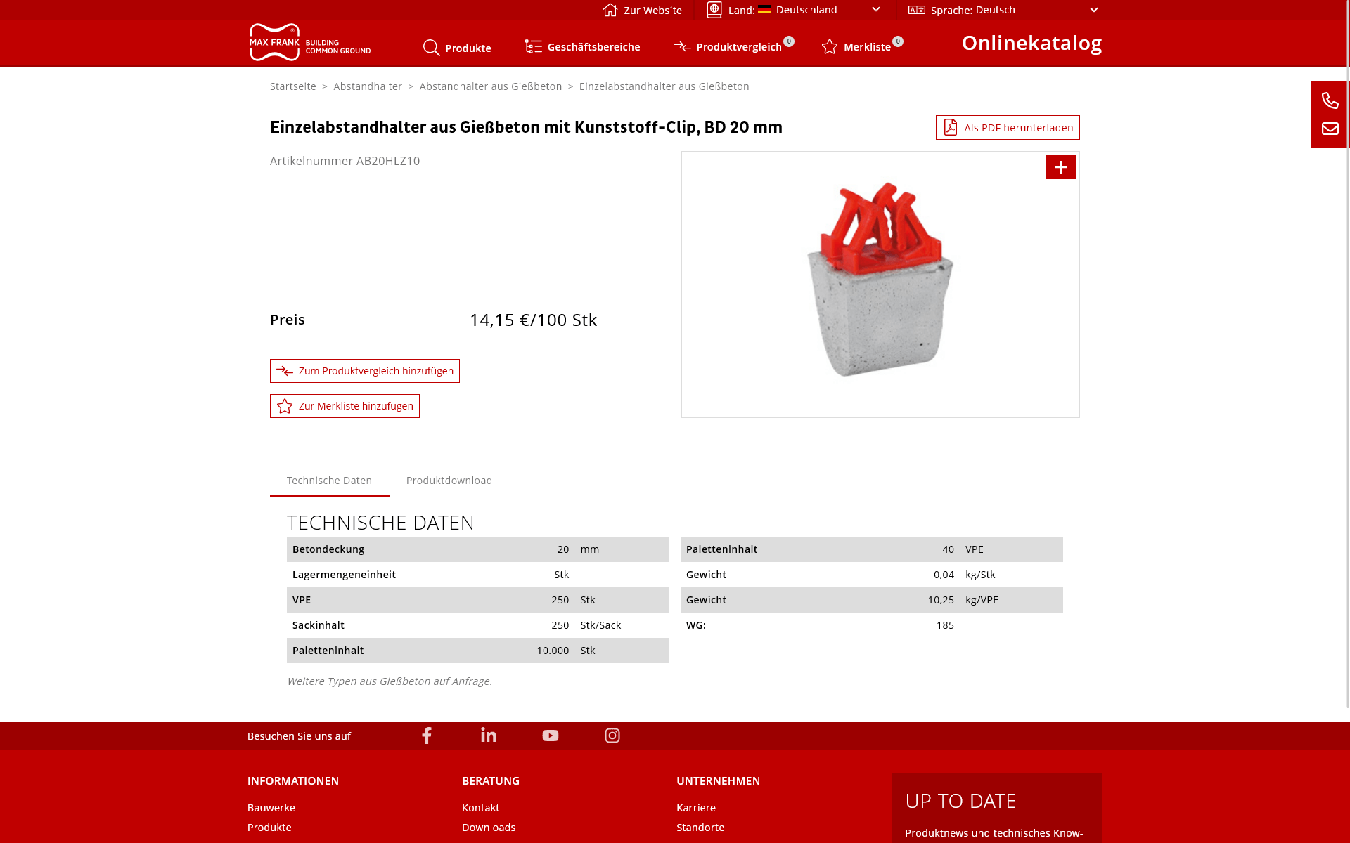 Aktuelle Produktdaten im Onlinekatalog von MAX FRANK